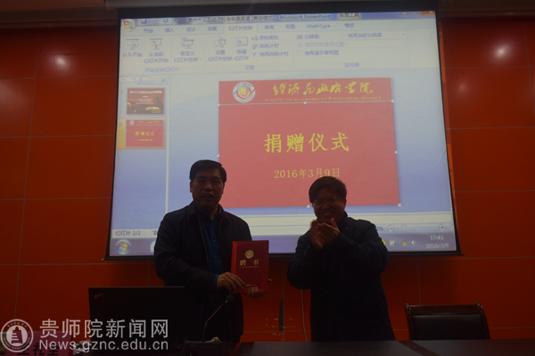 讲座结束以后,王礼全向学校捐赠了517册书籍和资料。陈扬书记代表学校接受捐赠,并向王礼全颁发客座教授聘书。