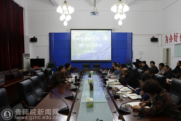 本网讯 3月7日,贵州旅游研究院(筹)第一次工作会议在学校第一会议室召开,副校长何林、校长助理徐凤增出席了此次会议。本次会议是为尽快落实2016年第二次校长办公会精神,紧扣“一体两翼”战略,加快推进“文化旅游翼”建设而召开的大旅游学科工作会议,参加会议的有地理与旅游学院等涉旅学院、科研处等相关处室主要负责人以及相关专家学者,座谈会由徐凤增主持。