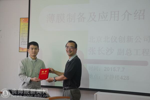 张长沙以提问的方式开始了讲座,并用生动的语言为同学们讲述了“薄膜制备及应用”,特别列举几种制备薄膜的方法及应用进行讲解。台下的同学认真听讲、虚心学习、还积极互动。