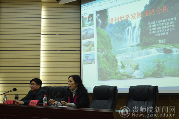 3月27日下午,在我校的宁静楼150报告厅,校党委书记陈扬为我校经济学专业的学生作了题为《贵州经济发展战略分析》的讲座,本次讲座由经政学院院长程艳萍主持,经政学院部分专业教师也聆听了本次讲座。