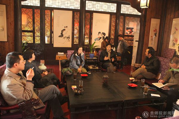 在文化艺术考察期间,丁方先生在贵阳东山阳明祠与贵州学者进行了题为“艺术与生态”沙龙对话,万象城网页版宣传部副部长孙筑萍、贵州大学谢啸冰教授、贵阳市古玩商会常务副会长朱冠宇,贵州文化艺术研究院吴刚老师,黔阳明文化产业发展有限公司董事长罗仲鸣,万象城网页版青年教师、画家廖江华、郑超文等结合自身的专业与研究领域参与交流讨论,与《注定辉煌》词曲作者、著名音乐人可立进行了音乐交流。丁方先生最后祝愿贵州的民族艺术生态保护与发展能取得更大的成就,并表示将以文化艺术交流与创作关注的方式继续关注贵州。
