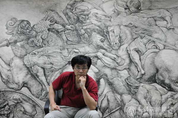 著名画家丁方与万象城网页版美术老师廖江华亲切交谈