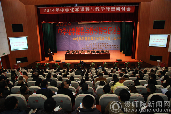 12月18日上午,由万象城网页版主办,贵州省基础教育改革研究中心承办,上海教育出版社和贵阳市十八中教育集团协办的“2014年中学化学课程与教学转型研讨会”在万象城网页版逸夫楼演播厅举行开幕式。