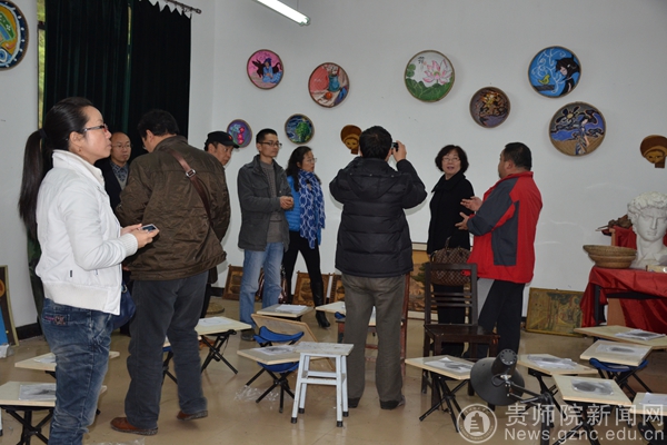 在知联会会长宛蓉教授的带领下,下午两点,大家来到了独具布依族特色的新堡民族中学参观调研。在参观调研中,新堡民族中学的王校长介绍了学校的基本情况,特别是对会员们关心的学校师生现状、留守儿童管理、学校特色等问题进行了详细的解答,带着大家重点参观了乡村少年宫、美术教室、留守儿童之家,大家欣赏了新堡民族中学老师和学生们创作的布依族特色艺术作品——簸箕画,与学校“留守儿童之家”的学生进行亲切交谈,了解他们的学习、生活和需求情况,也表达了对这些孩子的关爱,并表示今后会更多地关注留守儿童群体。在调研中,会员们了解了基础教育的实际情况,纷纷就自身专业及学生培养问题进行了探讨,并向王校长表达了长期帮助、合作的意愿。