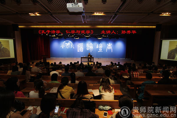 10月4日上午,我校党委宣传部副部长孙秀华博士赴贵阳孔学堂作了题为“孔子的诗学、仁学与武学”的专题讲座。讲座中,孙秀华通过大量的史料和研究成果向到场听众介绍了孔子在诗学、仁学、武学方面的思想成就及对后世的影响和当下的现实意义。
