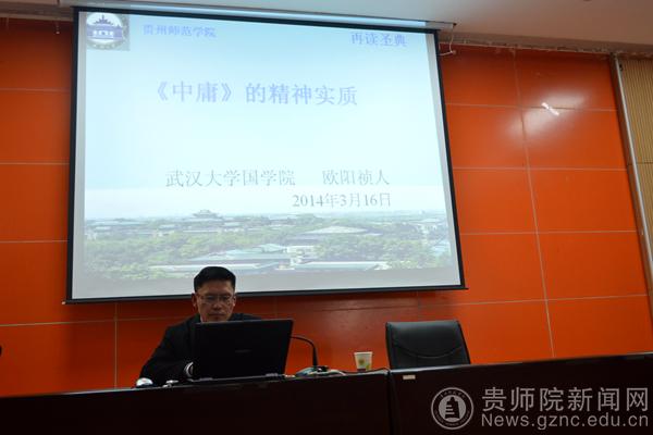 3月16日下午,武汉大学国学院教授、中国传统文化研究中心博导欧阳祯人先生,在我校文韬院学术讲堂做关于《<中庸>的精神实质》学术报告。本次活动由学校科研处主办,经济与政治学院承办。宣传部孙秀华副部长、教务处陈业强副处长、经济与政治学院赵景飞博士、张贤明博士、及文学院、历社学院部分师生参加了讲座。