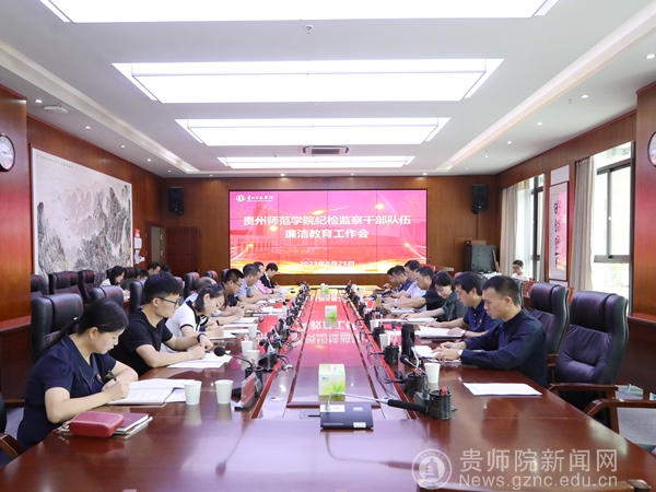 本网讯 8月25日,按照“清廉贵州建设年度行动计划2023”工作部署,结合学校“印山清风·鉴湖廉韵”清廉师院建设工作要求,我校在信息楼二楼会议室召开纪检监察干部队伍廉洁教育工作会。会议由校党委委员、纪委书记、省监委驻校监察专员韩兵兵同志主持。