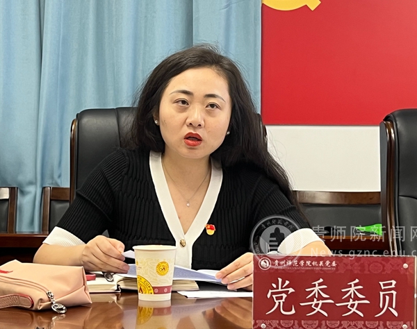 在交流发言环节,机关第十支部书记、人事处处长宋婷禹围绕主题作了心得分享。她提出,要用实际行动去践行我们立德树人的根本方法,为学校高质量发展贡献力量。机关第七支部书记、质评办主任任翠娟围绕主题,深刻阐述了把立德树人成效作为检验学校一切工作标准的发言;机关第十二支部书记,后勤处处长干正洋围绕主题并结合工作实际分享了后勤保障工作中落实立德树人根本任务,服务学校高质量发展的心得体会。