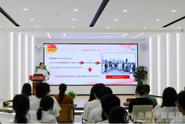 活动在激昂雄壮的国歌声和诗歌朗诵《青春》中拉开序幕。团支部书记陈雯同学以《五四薪火生生不息》为题讲授主题微团课,引领全场重温了中国共产党领导下的百年中国青年运动史,回望了无数爱国志士进行彻底的反帝反封建斗争、以蓬勃的青春力量为实现中华民族伟大复兴的中国梦而挥洒赤诚热血的峥嵘岁月。团青代表们带来的手势舞《国家》,更是将现场的爱国主义气氛推向高潮,引发大家胸怀“国之大者”的自觉、自勉和自信。随后,团员代表严宸同学从思想建设、组织建设、学风建设和作用发挥四个方面对团支部的工作情况作了简要汇报。