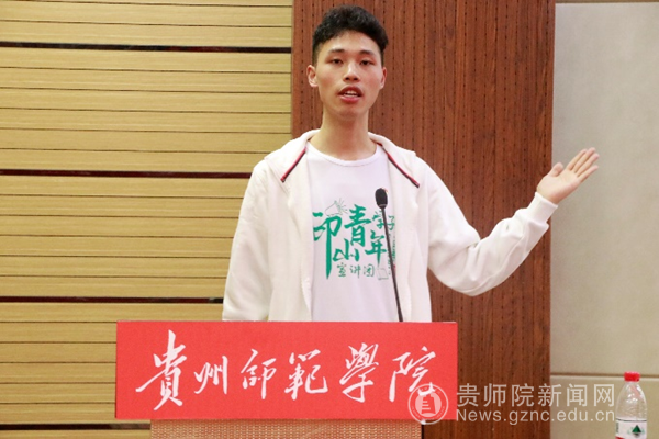 本轮宣讲团成员高寒秋围绕党的二十大报告中牢固树立和践行绿水青山就是金山银山的理念,站在人与自然和谐共生的高度谋划发展,展开宣讲,让各青年学子牢固树立生态文明理念,将绿色发展观践行到生活中。