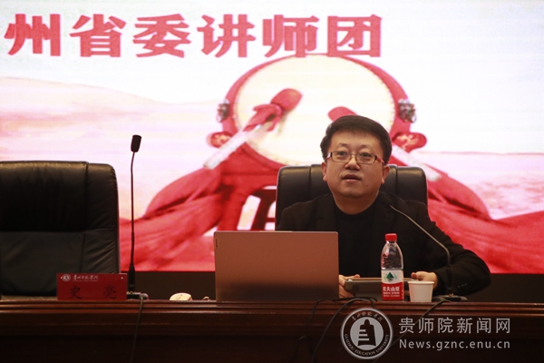 本网讯为持续深入学习宣传和全面贯彻落实党的二十大精神,讲好“印山青年”宣讲团示范课,激励全校青年教师和广大学生以高度的政治责任感和使命感,践行“为人师表”的校训精神,立志做有理想、敢担当、能吃苦、肯奋斗的新时代好青年努力奋斗。3月31日下午,校团委联合宣传部于逸夫楼演播厅开展2023年春季学期主题思政课暨“对话青年,与时代同行”青春大讲堂,邀请到中共贵州省委党校(贵州行政学院、中共贵州省委讲师团)宣讲教研处副处长,贵州省十佳宣讲员史亮老师作党的二十大精神专题讲座。校党委宣传部部长薛璞、校团委书记罗荣、校党委宣传部副部长周煜、校团委副书记伍玲婧出席讲座,辅导员代表、“印山青年”学子宣讲团成员、青马工程学员以及各学院学生代表300余人参与学习。