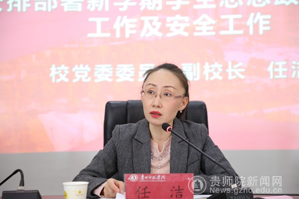 会上,学工部部长刘红玲、教务处处长邓琴、保卫处副处长刘宪帮、乌当区高新路派出所所长岳奇、心理健康教育与咨询中心负责人谢其利,分别就新学期学生管理与辅导员工作、毕业生学籍学历和学位授予相关工作、校园安全稳定工作、防网络诈骗安全教育工作、心理健康教育工作与参会人员进行了交流。