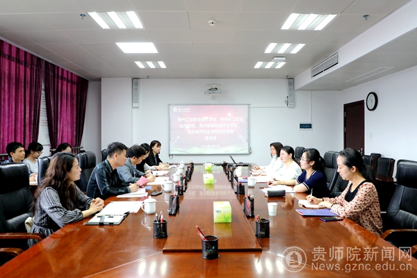 本网讯 6月2日,贵州工业职业技术学院、贵州轻工职业技术学院、贵州装备制造职业学院、贵州城市职业学院到校调研统战工作交流座谈会在信息楼1011会议室举行。贵州工业职业技术学院校党委委员、宣传统战部部长龙明堂,宣传统战部副部长严泓,贵州轻工职业技术学院校党委委员、宣传统战部部长暨星球,贵州装备制造职业学院统战部副部长杨长友,贵州城市职业学院校党委委员、宣传统战部部长张苑莎,我校党委委员、统战部部长、党政办公室主任张婷,统战部副部长林静出席会议。会议由林静主持。