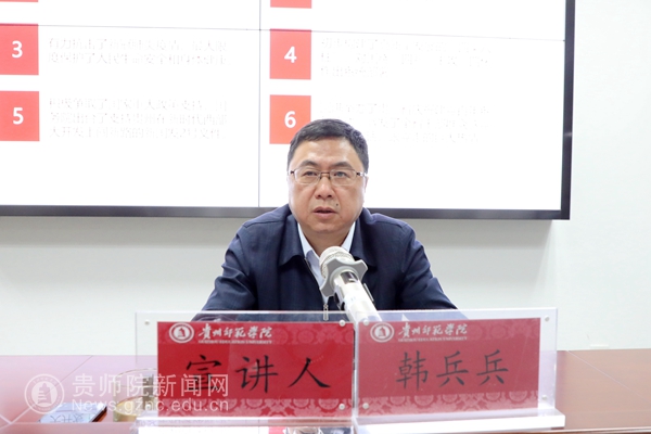韩兵兵从深刻把握省第十三次党代会的重大意义、深刻把握今后五年贵州高质量发展的重点任务、深刻把握省委对学习贯彻落实大会精神的要求以及我校纪检监察工作如何抓好贯彻落实等四个方面,对省第十三次党代会精神进行全面宣讲和深刻阐释。