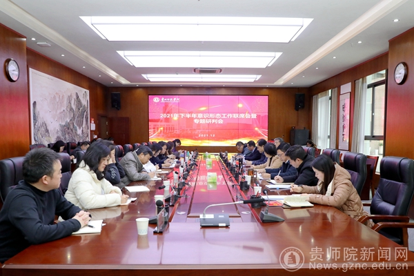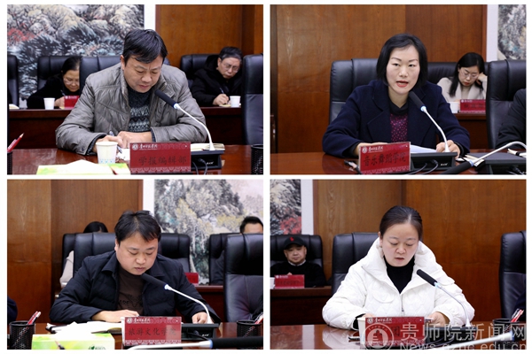 会上,校党委委员、纪委书记韩兵兵同志传达了《贵州省委(党组)网络意识形态工作责任制实施细则》;校党委宣传部部长薛璞和统战部部长张婷分别汇报了我校今年下半年的意识形态工作和宗教工作情况,为大家增强问题意识,找准做好学校意识形态工作和宗教工作的着力点提供了基本遵循。在工作交流发言环节中,校团委书记罗荣、学报编辑部主任赵德肃、旅游与文化学院党总支书记冯建国、音乐与舞蹈学院党委书记付巧分别从党群部门、教辅部门、二级学院的角度总结了意识形态工作的经验,并对新形势下如何抓好基层意识形态工作进行了深入探讨。