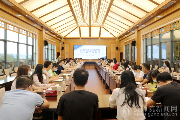 本网讯 为持续开展党史学习教育,在“转作风”中深入推进“三服务”,在服务师生中不断增强学习教育实效,8月30日上午,我校2021年办公室工作会议在印山书院二楼会议室召开。校长韦维出席会议并讲话。