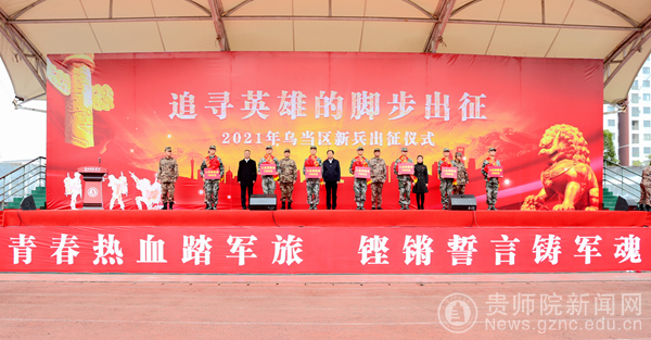 万象城网页版党委书记石培新,省征兵办公室副主任、省军区动员局副局长邓小瑾,贵阳警备区副司令员郑风潮,学校党委委员、副校长邹晓青,乌当区政府副区长谢军,区人武部部长谭全权,区委常委、人武部政委李鹏春,区人武部副部长黎权,省军区动员局参谋叶潇等领导出席出征仪式。