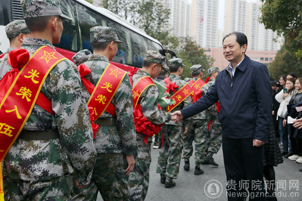 新兵代表2017级体育教育专业许磊说,党和国家号召我们青年大学生积极参军,这是历史赋予我们的重任,也是有志青年应该履行的义务。进入部队,我们将把“吃苦在前,甘愿奉献”的思想牢牢扎根,秉承“求真务实,自强不息”的校风,“立志勤学,知行合一”的学风,把贵师院学子的风貌带入部队的大熔炉,不忘报国初心,早日成为一名合格的军人,为学校、家乡人民争光。