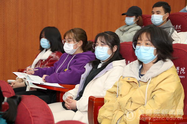石培新首先从“四个时刻”为学生们阐释了充分认识习近平总书记视察贵州的重大意义。石培新说,总书记这次视察贵州,正值立春和农历小年,总书记在贵州制作当地传统节日食品黄粑、认真察看春节前“菜篮子”、“米袋子”、“果盘子”等供应保障情况,饱含了对贵州各族干部群众的特殊关怀、特别厚爱;总书记在中央将召开脱贫攻坚总结表彰大会的时刻来贵州,沿途所见是一派欣欣向荣景象,对我省脱贫攻坚工作给予了高度肯定;总书记在“十四五”开局的关键时刻视察贵州,提出贵州发展的总体要求,为开启我省全面建设社会主义现代化新征程提供了行动纲领、指明了前进方向、注入了强大动力;总书记在在建党100周年的历史时刻视察贵州,回顾了红军长征历史特别是遵义会议的历史,为全省广大党员干部进行了深刻的党史党性党风党纪教育。石培新还饱含深情地说,习近平总书记这是第六次到贵州,也是今年第一次到地方开展综合性调研,是贵州发展史上具有里程碑意义的大事。全省各族干部群众都沉浸在总书记给我们带来的兴奋、温暖、幸福、喜悦之中,作为师院人,要发自内心的感恩党、感恩党中央、感恩总书记。