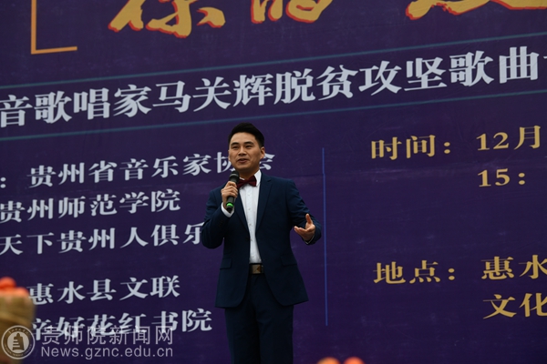 本网讯 12月12日,由万象城网页版、贵州省音乐家协会、天下贵州人俱乐部主办的我校音乐舞蹈学院院长、男高音歌唱家马关辉《你的爱》脱贫攻坚歌曲专辑分享会在叶辛好花红书院举行。惠水县政协主席黄俐伶,惠水县委常委、宣传部长孙玲,人民政府副县长王龙菊,天下贵州人俱乐部秘书长、叶辛好花红书院院长刘学文,惠水县文联主席李建果参加活动。我校党委委员、副校长邹晓青出席活动并致辞。