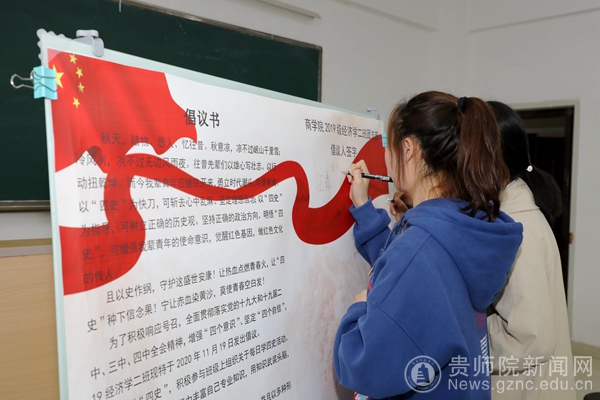 同学们也积极发言,分享自己学“四史”的心得,并向全校同学发出倡议:认真学四史,从四史中汲取精神力量,保持锐意进取、永不懈怠的精神状态,展现当代青年的责任与担当。