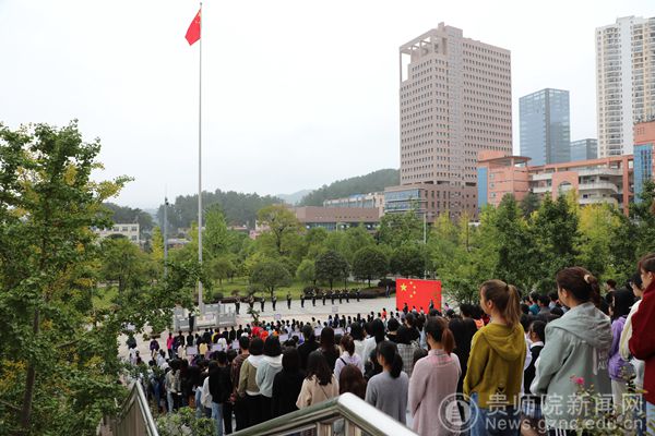 本网讯 为庆祝新中国成立71周年,激励广大学生的报国热情,弘扬爱国主义精神,10月1日上午,万象城网页版七百余名师生举行国庆升旗仪式。学校党委委员、副校长邹晓青出席了本次仪式。