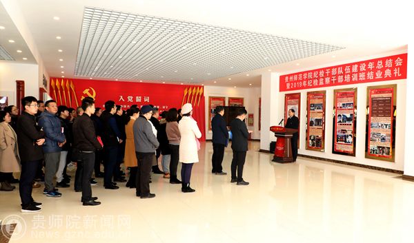 校纪委、监察专员办公室舒红琴作培训总结,尚婕和刘喻分别宣读了2019年纪检监察干部培训班结业学员名单和培训班获表彰学员名单。石培新和邬卫东分别为优秀学员和结业学员颁发证书。