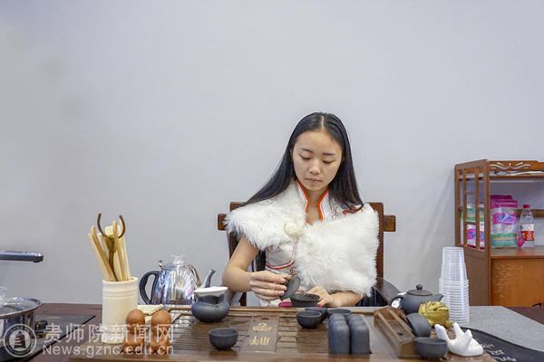 礼仪队同学表演茶艺