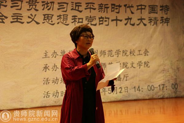 比赛开始,各个学院的选手按抽签顺序依次上台演讲。比赛采用百分制,由演讲和现场回答问题两部分组成。来自外国语学院的户晓娟以《花开十年》为线索,声情并茂地介绍了贵州盲人女教师刘芳,并希望这感人的精神能以星火燎原之势,席卷中国大地;来自设计学院的黄美净用鲜活的例子,向大家阐述了劳动的意义;而文学院的王婧凌则是从多方面、多层次调的角度诠释了教育初心,她说,我们不只是要做一名教书匠,而是要做一名有专业感、有热情的教育者。紧接着,来自其他学院的参赛选手也以饱满的热情,激昂的演讲词使整个现场气氛浓烈,不时台下传来阵阵掌声。各位参赛选手也纷纷上台,展示个人风采。回答问题部分,选手现场抽取党的十九大知识题库题目作答。主持人读完题目后,选手认真思考,即可做出回答,绝大多数选手都准备充分,能正确回答问题。再次环节中,也让现场的学生观众重温了习近平新时代中国特色社会主义思想和党的十九大精神。