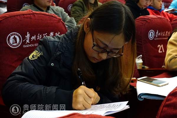 会场认真做笔记的学生
