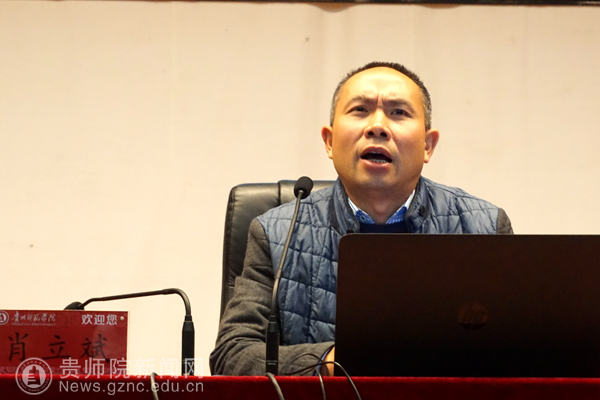 观摩成人礼结束后,贵阳孔学堂文化传播中心研修部部长、贵州大学人文学院教授、硕士生导师、中国人民大学博士肖立斌老师为团学干部们讲授了《中国传统道德及其现代化转型》。肖立斌指出,由于文化的碎片化,百姓日用而不知道德等原因,中国的传统道德尚未实现现代化转型和创新性发展。肖立斌从“仁、义、礼、智、信”五个方面详细论述了中国传统道德的现代化转型。