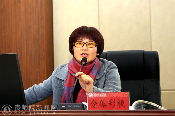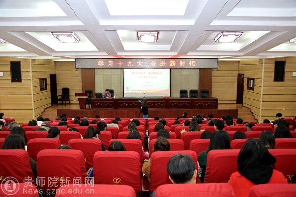 令狐彩桃以 “学习十九大,奋进新时代” 为题,分别从“中国进入了新时代,这是我国发展新的历史定位——关注十九大”、“贵州进入了新时代——关注习近平总书记在贵州代表团讨论时的重要讲话精神”、“我国教育事业进入了新时代——关注教育全面发展重大战略部署”三个方面,全方位、多层次对党的十九大精神进行了宣讲。结合十九大对高等教育提出的新要求,令狐彩桃从“要以新的方位审视教育”、“要以新的理论指导教育”、“要以新的使命谋划教育”、“要以新的姿态推进教育”等方面,对十九大报告中关于教育的论述进行了重点解读。