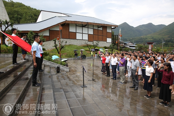 本网讯 为进一步深入推进“两学一做”学习教育常态化制度化工作,让全体处级干部传承红色基因,在学思践悟中永葆对党忠诚的政治本色。8月24日,我校组织全体副处级以上干部、各基层党委纪检委员到红色革命圣地、全省纪检监察干部党性体检基地——遵义枫香苟坝开展主题为“提升党性知敬畏永葆忠诚守纪律”的党委中心组(扩大)学习活动。