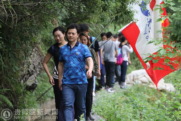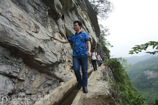 当天上午,在平正仡佬族乡团结村,全体师生党员徒步观瞻了大发渠,站在水渠边上,垂直几十米的落差让人不寒而栗,可见当年修建水渠的不易。