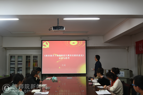 龙诚围绕“《教育部关于加强师范生教育实践的意见》认识与思考”为主题展开微党课,将理论学习与实际业务工作相结合,从“明确教育实践的目标任务、构建全方位的教育实践内容体系、丰富创新教育实践的形式、组织开展规范化的教育实习、全面推行教育实践双导师制、完善多方参与的教育实践考核评价体系、协同建设长期稳定的教育实践基地、建立健全指导教师激励机制、切实保障教育实践经费投入”等九个方面详细解读《教育部关于加强师范生教育实践的意见》,并根据我校师范生教育实践工作的实际情况,仔细深入地详谈了对该项工作的认识与思考、设想与打算。