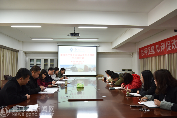 本网讯 按照学校《关于学习贯彻党的十八届六中全会精神的通知》(贵师院发[2016]57号)文件精神,12月7日上午机关党委教务处支部在教务处会议室学习了第十八届六中全会精神。副校长郭文和教务处党员参加了会议。