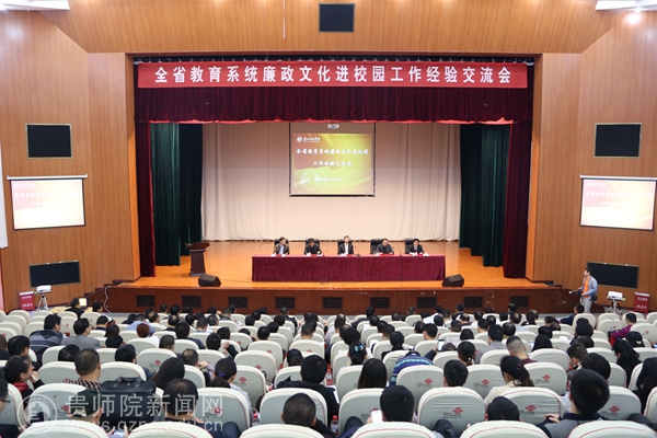 11月16日下午,全省教育系统廉政文化进校园工作经验交流会在我校逸夫楼演播厅隆重召开。省纪委副书记陈再天、省委教育工委副书记赵廷昌、各地州市教育局领导 各学校纪委书记 宣传部长以及我校党委书记陈扬、校长李存雄等领导参加交流会,交流会由省教育厅正厅级纪检监察专员罗润生主持。