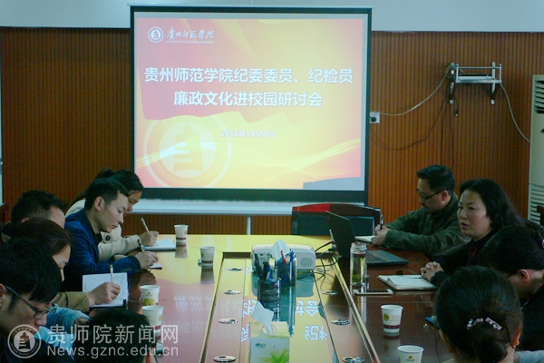 研讨会上,与会人员紧紧围绕与思想教育相结合、与校园文化建设相结合、与课堂教学工作相结合等三个方面建言献策。一是加强教师的教育,在教职工大会、党员大会、每周集中学习时间进行廉政从教的学习,发放学习手册,观看警示片;二是加强学生教育,在党课和团课上邀请专家来校作廉政专题报告;三是在将廉政文化融入到校园文化建设中,制作专栏展板、文化长廊悬挂敬廉倡廉标语,开展丰富多彩的主题活动,通过廉政文化知识竞赛、廉政文化作品展、廉政演讲比赛等多种活动,使廉洁意识植根于师生内心深处。四是促进廉政教育进课堂,提高学生的思想品德。