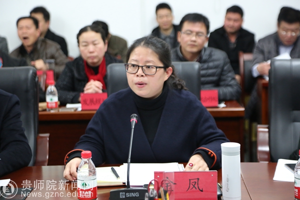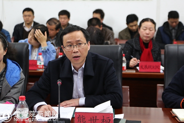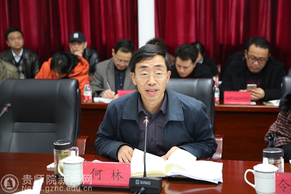 听完相关专项组的汇报后,校长李存雄发表了重要讲话。他指出,各专项组、各部门在思考自己工作的同时,还更应该将专项工作的规划与教师如何成长、学生如何成才,怎样更好地为贵州教育服务这三个问题相结合。我校的十三五“规划”编制,一定要认清转型发展的趋势,紧紧围绕“一体两翼”的学科专业集群,建立优质的课程体系;紧紧围绕“一型两性”的办学定位来规划课程设置;同时加大力度抓好大学招生、学生管理、合作办学、教师队伍建设,在管理体制上弘扬创新,力求在“十三五”发展时期,让全校师生员工同心同向,共同为学校的事业发展添砖加瓦。