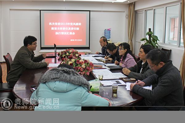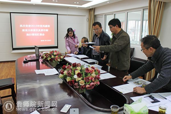 副校长郭文充分肯定了机关党委在2015年党风廉政建设的主体责任落实工作及党风廉政建设责任制的执行情况,认为工作做得全面、到位。郭文对机关党委今后的工作提出了两点建议:一是进一步加强党性、党风、党纪及廉洁从政教育,加大对党员的教育、培养力度;二是从“四风”方面,要进一步严明纪律,持之以恒加强廉洁从政教育,通过加强作风建设,促进学风、教风、校风的建设。