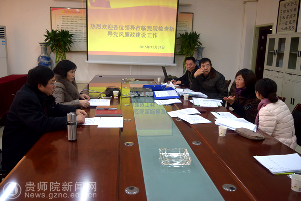 12月31日下午14时,校党委副书记令狐彩桃带领党风廉政检查组成员计财处处长曹克坚、审计处处长姜建国、组织部副部长刘喻、党政办王文杰老师,到经济与政治学院检查考核2015年党风廉政建设主体责任落实情况及党风廉政建设责任制执行情况。