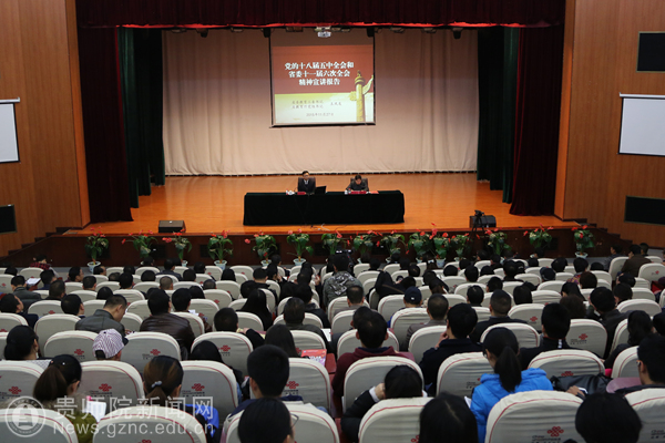 11月27日,省委宣讲团成员,省委教育工委书记,省教育厅党组书记、厅长王凤友到我校开展党的十八届五中全会和省委十一届六次全会精神专题宣讲活动。宣讲报告会在逸夫楼演播厅举行,由校党委书记陈扬主持。我校领导干部、师生员工代表400余人聆听了宣讲报告。