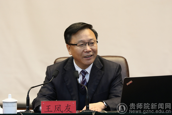 最后,王凤友强调,实现“十三五”时期奋斗目标,前景光明美好,任务繁重艰巨。省委六次全会号召,全省各级党组织和广大党员干部群众要紧密团结在以习近平同志为核心的党中央周围,坚持艰苦奋斗、长期奋斗、不懈奋斗,鼓起劲来抓发展,弯下腰来拔穷根,携起手来奔小康。教育关系国家未来和民族希望,关系亿万家庭的幸福。加快教育发展是改变贵州、挖掉穷根的治本之策,是全面建成小康社会的必然要求。全省教育系统要切实做到谋划发展“扣扣子”、责任履行“担担子”、工作落实“钉钉子”,为全面完成“十三五”规划目标任务、实现全省教育事业历史性新跨越而不懈努力奋斗!