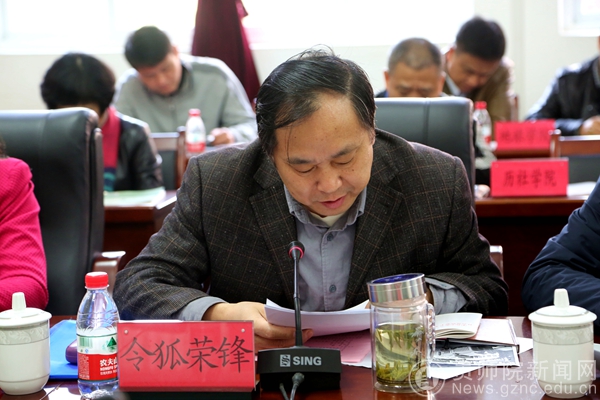 会上,校领导传达了党的十八届五中全会和省委十一届六次全会重要文件。副校长令狐荣锋传达了习近平《关于<中共中央关于制定国民经济和社会发展第十三个五年规划的建议>的说明》。校党委副书记令狐彩桃传达了《中国共产党第十八届中央委员会第五次会议全体会议公报》。校纪委书记王之瑞传达《中国共产党贵州省第十一届委员会第六次全体会议决议》。副校长郭文传达了《中共贵州省委关于制定贵州省国民经济和社会发展第十三个五年规划的建议》。