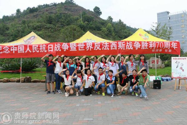 为纪念中国人民抗日战争暨反法西斯战争胜利70周年,9月2日,由校团委主办,大学生社团联合会承办的 “牢记历史·缅怀先烈·珍爱和平·开创未来”的主题活动在鉴湖举行。