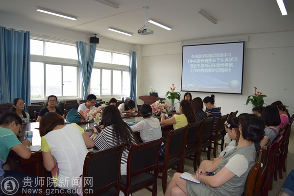 7月24日下午,外国语学院基层党委在333会议室组织召开专题学习会议,深入学习贯彻习近平总书记在贵州省考察工作时的重要讲话精神。外国语学院基层党委书记张瑶主持会议,副院长罗泳出席,全体教职工党员参会。