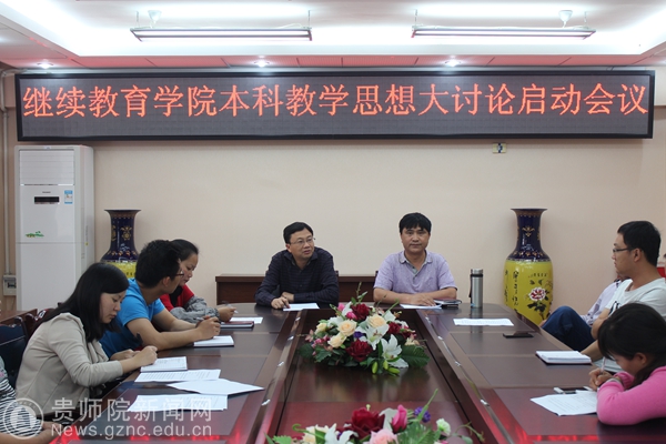 为积极响应学校进一步转换教育思想,更新教育观念,深化教育教学改革,准确把握本科教育教学规律,加快学校的全面转型和整体提升,以良好的态势开展好本科建设各项工作的精神,扎实推进本科教育思想大讨论活动,6月8日下午,继续教育学院召开本科教学思想大讨论启动会议。继续教育学院院长赵德肃主持会议并讲话。
