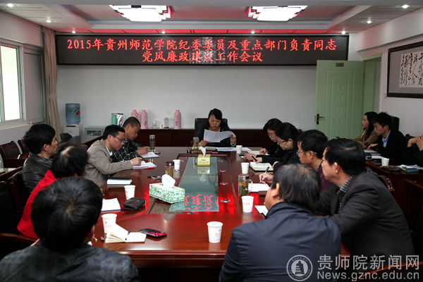 为深入学习贯彻中央纪委十八届五次全会和省纪委十一届四次全会精神,进一步做好我校党风廉政建设工作,3月18日上午我校组织召开了纪委委员及重点部门负责同志党风廉政建设工作会议。校纪委书记王之瑞出席会议并讲话,纪委委员谢红梅、曹克坚、姜建国、刘喻,组织部、教务处、科研处、招就处、人事处、计财处、国资处、基建处、资助中心、后勤处、图书馆、继续教育学院和实验中学主要负责同志参加了会议,会议由校纪委副书记谢红梅主持。