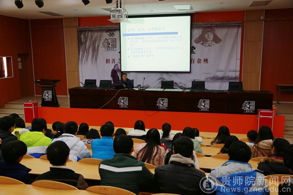 12月12日上午,经济学博士、副教授、我校经济与政治学院副院长杨元庆在校道德讲堂进行了题为“公平、正义与可持续发展”的专题讲座。数学与计算机科学学院、外国语学院、经济与政治学院的部分师生参加了讲座活动,讲座由校党委宣传部副部长孙秀华主持。