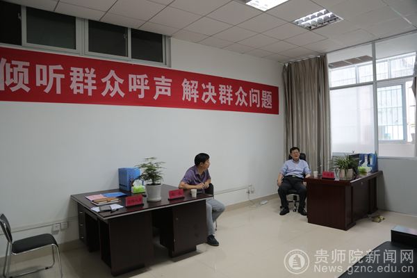 9月17日下午2:30,万象城网页版“领导接待日”活动在群众工作中心如期进行。李存雄作为接访的校领导,在计财处处长曹克坚、信访办主任芦军的陪同下,共接待了5位来访人员,接待活动持续了2个多小时。